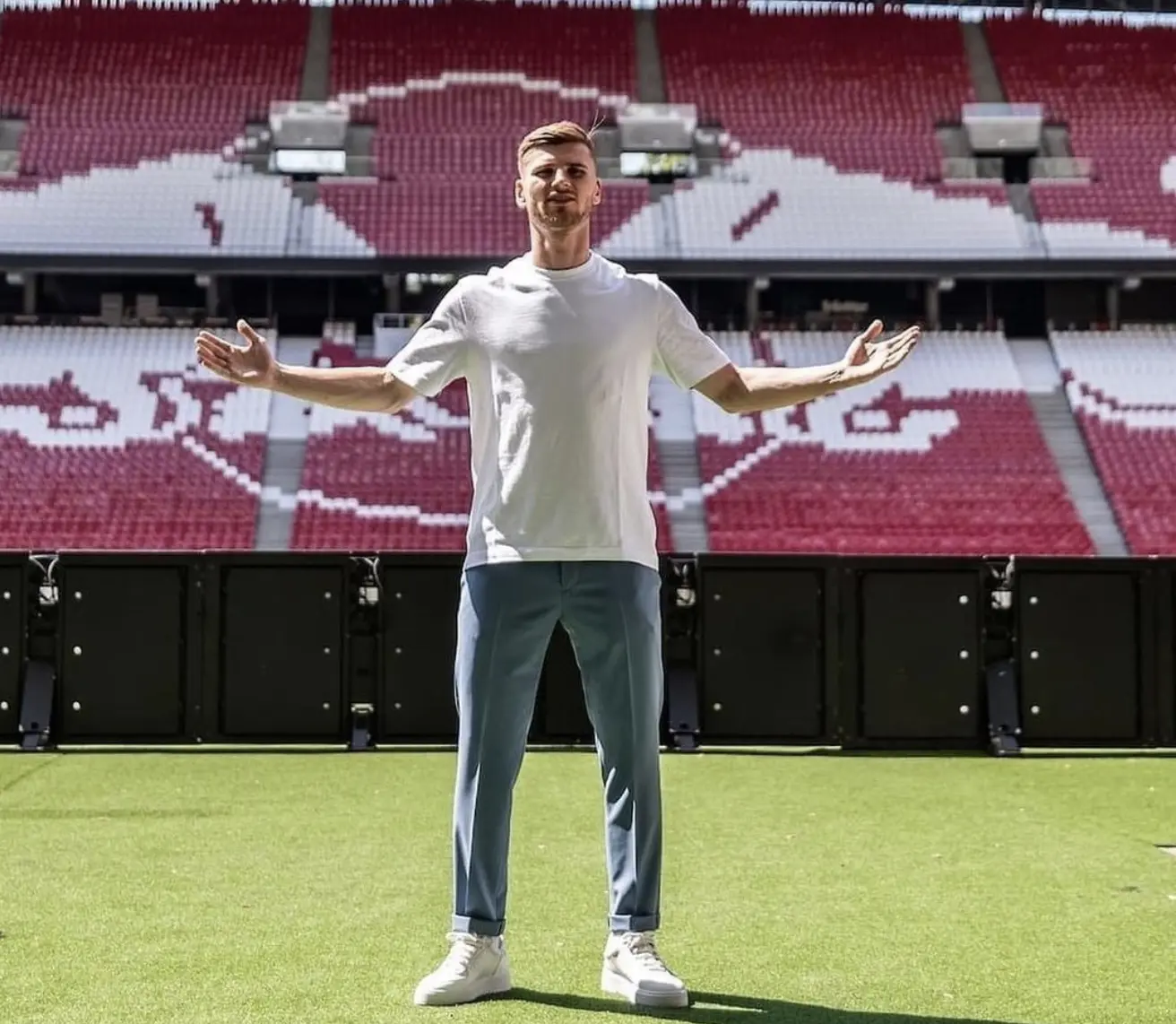 维尔纳第一次为莱比锡效力时是何等的风光,4个赛季进球数均为20+,单赛季曾有34球12助的表现,跟莱万争夺德甲金靴,德国转会市场也为他标价8000万欧元。维尔纳是勒夫执教德国队时的主力前锋,是德国队正印9号,也帮助德国队获得了联合会杯冠军。